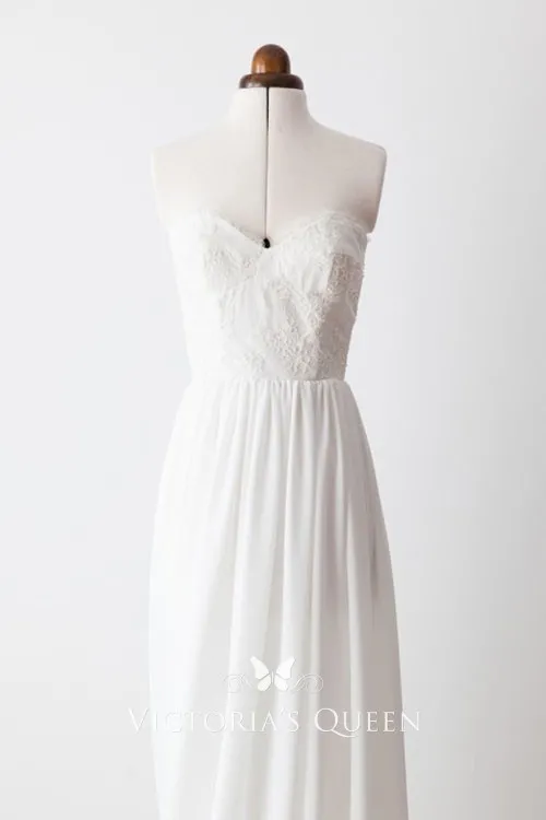 Strapless Sweetheart Lace Chiffon Long Wedding Dress Vq
