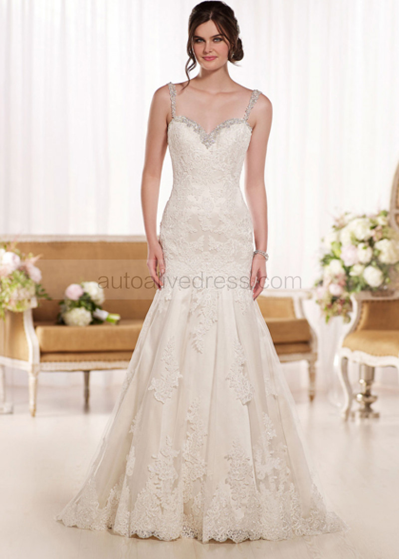 Mermaid Straps Backless Sweep Train Ivory Lace Beaded Wedding Dress