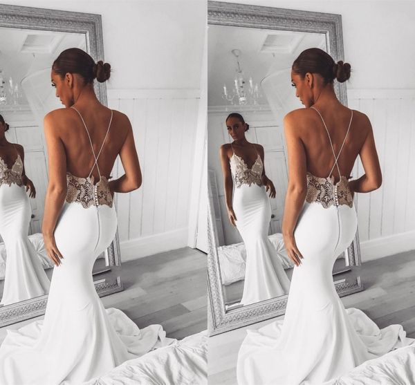 Backless Sexy Mermaid Lace Spaghetti Strap Wedding Dress Open Back