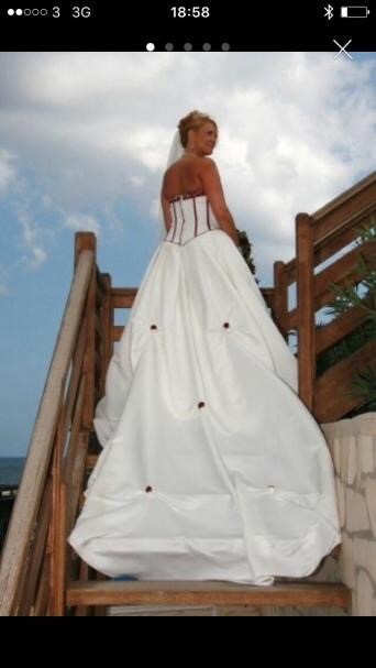 Burgundy Ivory Satin Strapless Wedding Dress Size 14 In