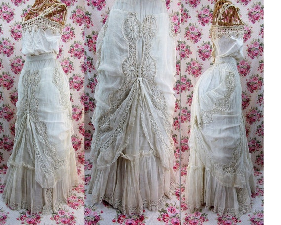 Victorian Skirt Size S Late 1800s Victorian Lace Skirt Antique Etsy