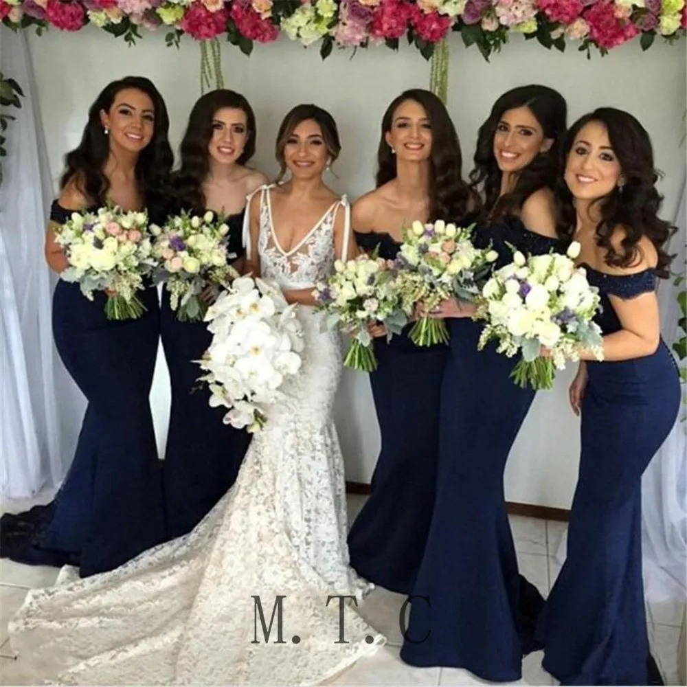 Hot Selling Navy Blue Bridesmaid Dresses 2019 High Quality Lace