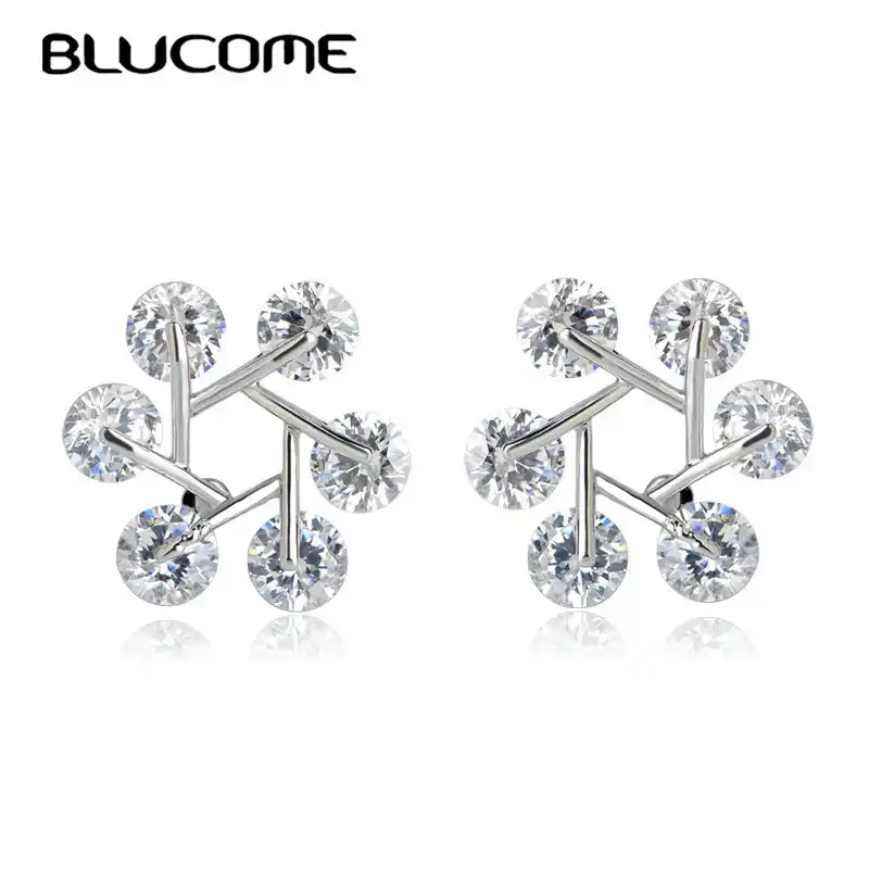 Blucome Hot Clearance Fashion Flower Shape Shiny Zircon Earrings