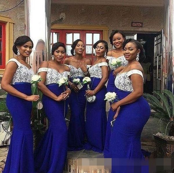 South African Lace Top Royal Blue Mermaid Bridesmaid Dresses 2019
