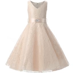Lace Girls Elegant Wedding Dress Summer Kids Graduation Prom Party