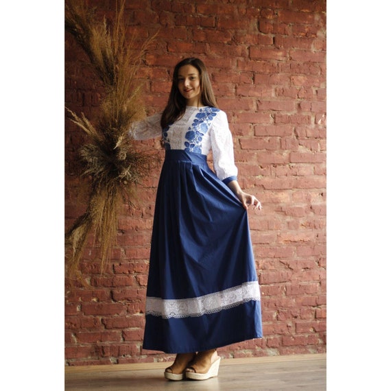 White And Blue Ukranian Wedding Dress Folk Wedding Guest Etsy
