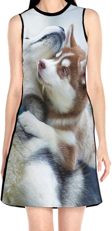 Women S Sleeveless Scuba Sheath Dress Hugging Huskies Love Print