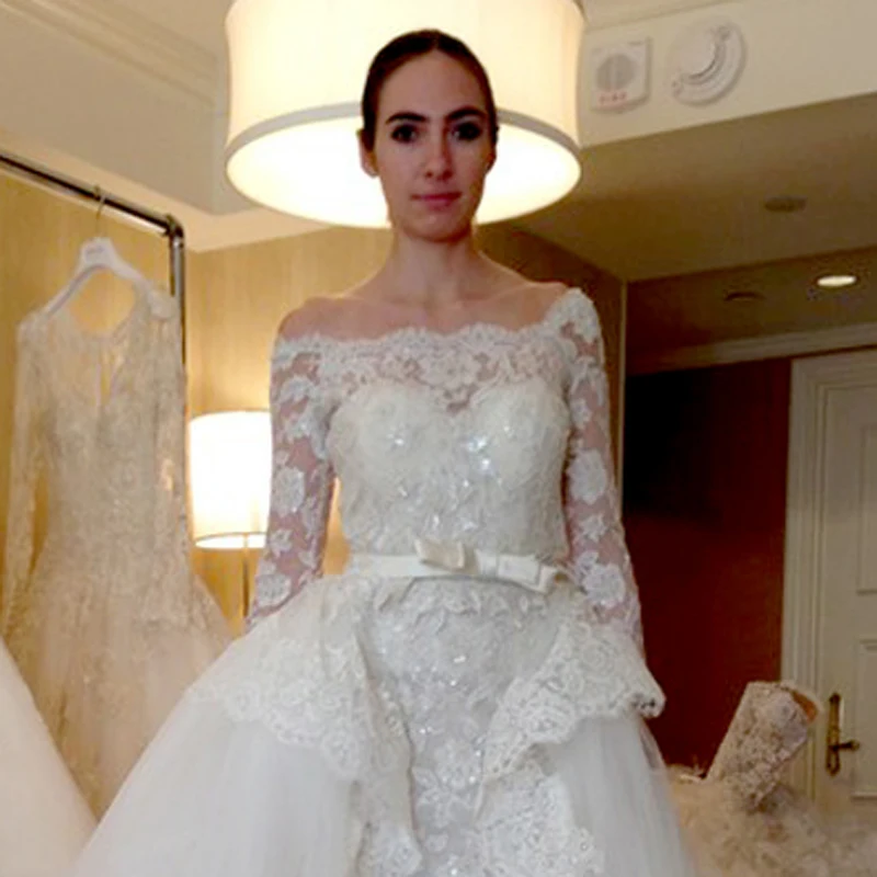 Hot Collar Lace Sheah Wedding Dress Long Sleeve Bridal Gown With