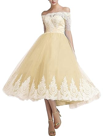 Off Shoulder With Sleeves Lace Tulle Cocktail Evening Gowns Midi