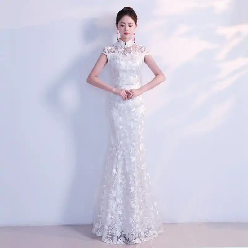 White Traditional Chinese Wedding Dress Sexy Qipao Mermaid