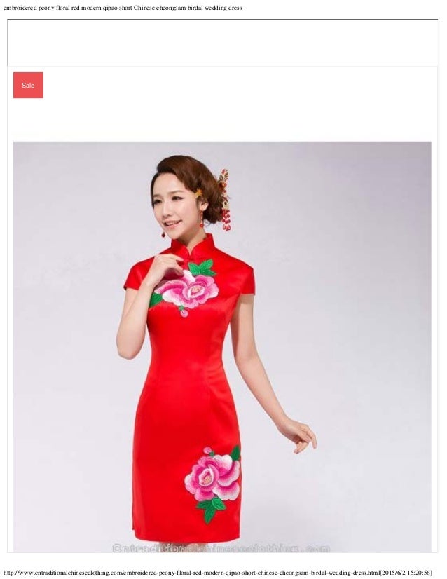 Embroidered Peony Floral Red Modern Qipao Short Chinese Cheongsam Bir