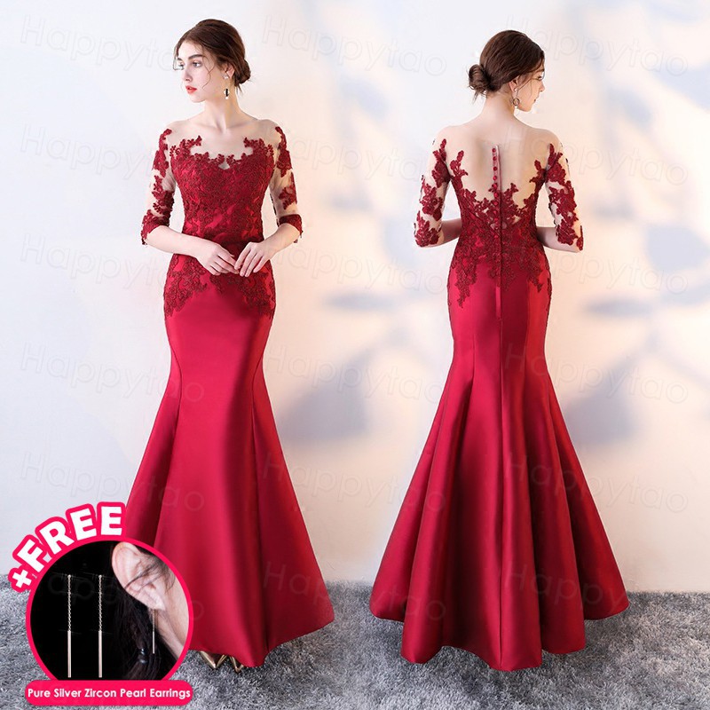 Luxury Formal Red Lace Wedding Gown Women Bride Dinner Dress