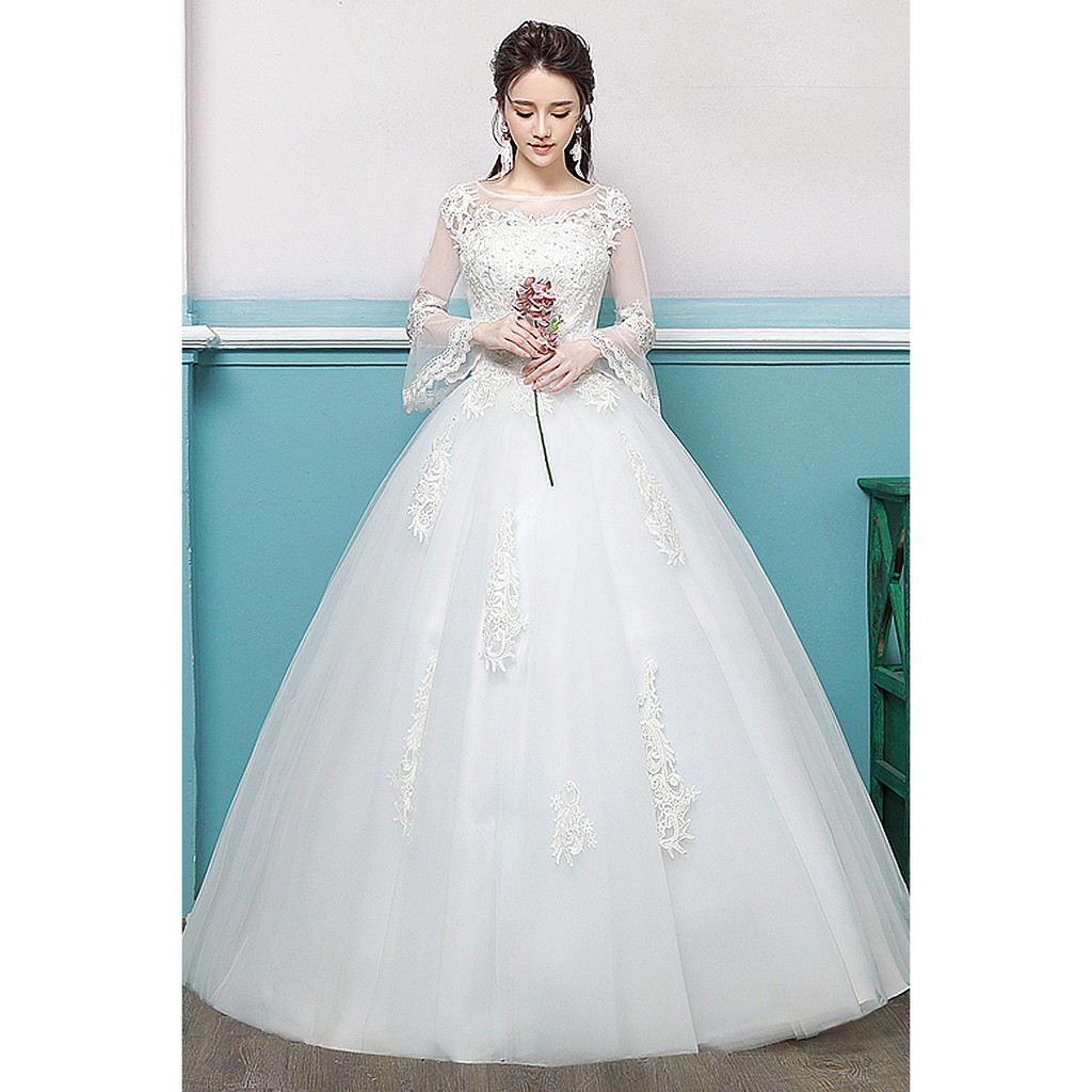 Simple See Through Lace Long Sleeve Wedding Dress 2019 Ball Gown