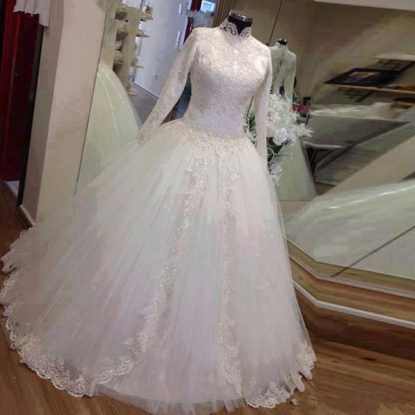 Discount Mandarin Collar Modest Muslim Wedding Dresses With Long