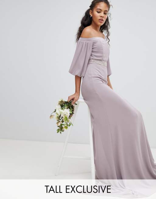 Tfnc Tall Bardot Maxi Bridesmaid Dress With Sleeve Drama And
